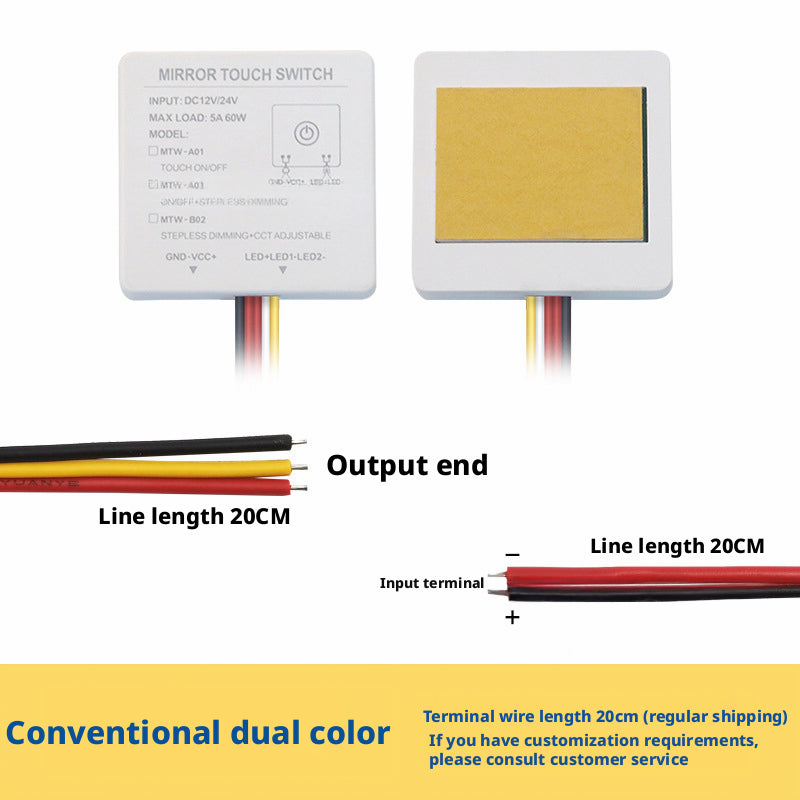 LED Mirror Touch Dimmer Switch 24V 5A Dual Color Bathroom Sensor Switch