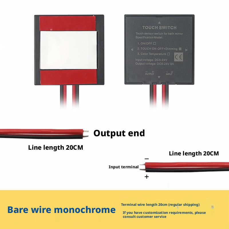 Compatible with DC 5–24V LED lighting systems, it is ideal for mirror lighting, cabinet lighting, and smart home integration projects.